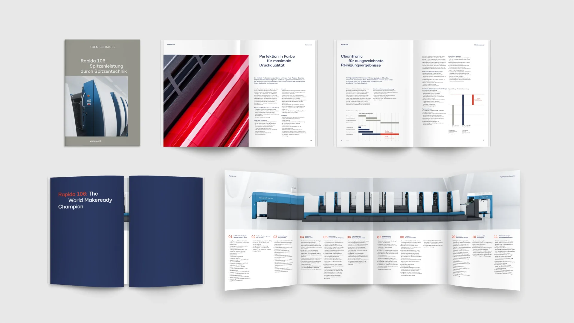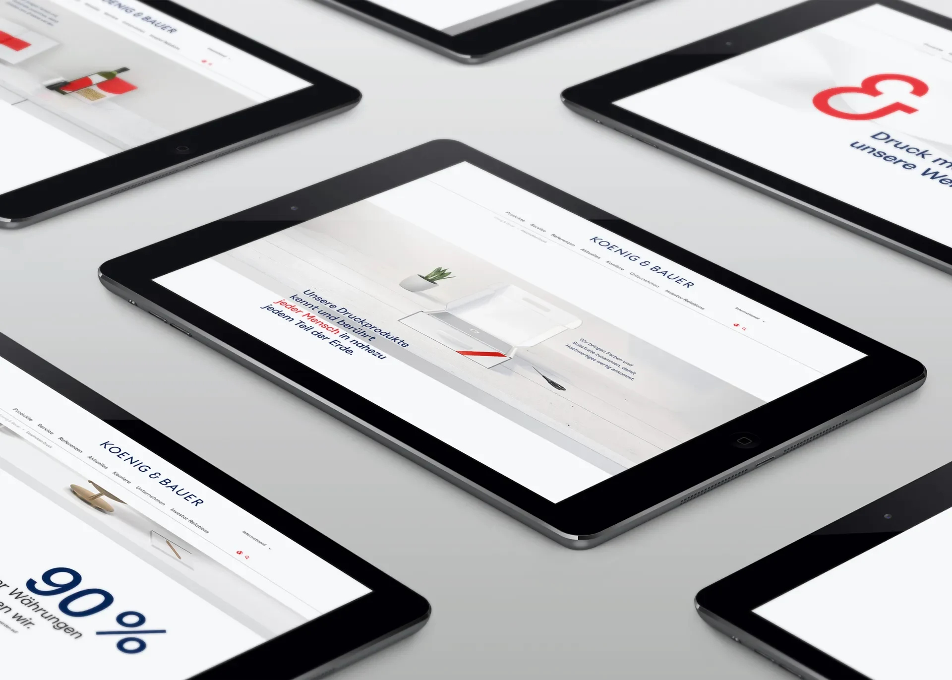 Unsere Reise mit Koenig & Bauer begann 2015, damals noch KBA und wir noch queo. Drei Jahre später, pünktlich zum 200-jährigen Jubiläum, kam die neue Corporate Identity an den Start. Seitdem begleiten wir die Marke bei ihrer Neuausrichtung auf allen Kanälen und an jedem Kontaktpunkt. Unser Auftrag: Außenauftritt und Strategie in Einklang bringen, das Premium-Angebot mit der passenden Kommunikation aufladen und die Balance zwischen kurzfristigen Marketingzielen und langfristiger Markenführung halten.